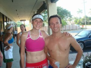 13 mi. Today was the Palm Beach County Ocean Mile Swim – great, but I ran instead looking to strengthen my legs and lungs in the mid summer heat. I ran 3 with Charlotte before the group, then the usual 10 with the Running Sports Group at 6am. I missed the start due to a nice line at the men’s room, but with the relaxed pace I was going, it didn’t matter much. I feel in shape physically, but breathing does seem lacking. Maybe neighborhood runs when it’s hot after dinner will help cure that! I have pressed harder as Dr Larivee instructed, maybe experiencing only mild soreness on the affected side, but no real issues on the healing leg. Charlotte and Scott Richards ran all the way back from the Inlet to the store with me. A prearranged mountain bike trip with some of John’s friends to Miami had me opt out of an ocean swim at Loggerhead Park today – I’ll catch up during the week…