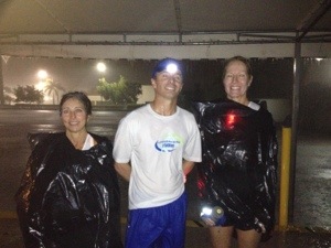 4.5 mi. I don’t have to cancel out of runs often, but today was a winner. I started with Lanae at 5:00 from the store, looking to do 16 miles. Once we turned on A1A heading south we met and passed Carol Hahn and Laura, her friend from Wellington. Lanae stopped for a bathroom break at French Connection restaurant, when we started again I felt rain. Carol and Laura had passed us again, and they were carrying black plastic bags in case of rain. We passed them at the dark driveway to Seminole Landing, that’s when the rain started in earnest. Big winds and sideways rain chased us down the dark path by the FP&L light. We ran through ankle deep puddles and tried to stay on the paved path – tough order! We made it to the first retail strip south of the Seminole neighborhood – and dashed under an awning to shield ourselves from the storm. Carol and Laura were quick to join us. Even under the generous awning, wind blew the rain in sheets all over us. We waited for the storm to mostly pass over, tracking it with Lanae’s radar app via iPhone. The run back was down the middle of the road, some of which was covered in unavoidable puddles. We ran back to the store, saw a few people leaving late to start their run, but I opted to go directly home and warm up. The rain, drop in temperature and saturated clothes really made for a cold version of Dave the Saturday runner.