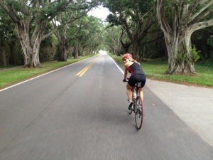 40 mi/3 mi Starting out on wet roads after you drive through a storm isn’t what you’re thinking prior to a ride. I sent a text to Lanae who confirmed that she was still riding. Anita found me via text to report that all of her group had bailed out so she would ride this weekend. It was dark when I pulled into the lot at Loggerhead, only a clean crew was present for the rest rooms. Lanae followed and we setup and took off north for 40 miles. It was breezy and cloudy, I could see rain in the surrounding area. We rode north, tentatively dismounting for all of the very slick and wet bridges, and up a wet Gomez road to the 40 mile turnaround. A quick stop for a Clif Bar in the park and we headed south. We stopped on Bridge Road to take some pictures – they came out satisfactory for action shots via iPhone. We rode into a significant wind coming home, but it was good practice. On any race day, rain and wet roads could be the conditions, I feel comfortable riding in this. Once back at Loggerhead Park we transitioned to the quick run. This time we went south to J-Town Bikes and then around the pond. Miles timed by Lanae’s phone app include results similar to last week – Mile #1 – 7:30, #2 7:09, #3 6:40. This was very good for me considering yesterday’s Classics 10k race. More speed as a load on my legs will pay dividends. It seems odd that I would be doing brick workouts with no triathlons in sight. My outlokk is that making these type of workouts part of the landscape, or normal, I’ll be very prepared for races when tri season begins. I see that being in March for 2013. Probably a sprint or maybe one of the lower priced HIT series races.