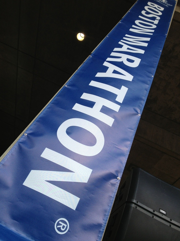 Arriving at Logan airport was easy, I found licensed merchandise Boston Marathon jackets on sale at 20% off in a gift shop. I couldn’t figure out why, the Expo was open (and the next stop for me) and I know they were being sold for $100 there. I bought one and called my brother to see if he wanted me to buy one for him. He declined, wanting to wait ’til he could run it to get any BAA merchandise. I took a cab to Harvard Business School, a really nice campus setting on the river. Charlotte knew I was nearby and came out to meet me and guide me up to her cousin’s apartment. He was out of state at Coachella music fest in LA for the weekend. We had a 1BR apartment with a generous couch for the stay! We took a train into the city and went to the Hynes Center for packet pickup and to see the vendor show. The Boston Expo is very well done, each supplier brings their very best personnel and gear. Great samples, things to try, it’s a great show! Charlotte and I got the numbers and packets, then bought some BAA merchandise. We met Diane Walsh and her family, they were staying nearby and had already gone to the expo. Diane and her mom cmpleted the 5k earlier Sunday morning, it was her mother’s first race ever. They were lively, fun and I looked forward to seeing them again after the race or at the House of Blues athlete party. Charlotte and I ate and drank samples, took a picture with Meb