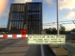 80mi bike/one hour (6mi) run – Thwarted from a typical early start because I dropped John off to be taken to run camp at FSU, I was leaving Loggerhead park alone at 7am. I rode to The tiki hut solo, then redesigned the route from 60 to 80 miles feeling that would be good for today’s ride and run. I had more Ezikiel bread/almond butter/orange preserves snacks, they worked even better this time. Knowing the bread is hard, I used extra spread to make them more moist and tasty – that worked well. I had extra carbo pro powder so when I stopped after 50 miles at the tiki station, I was ready for a fresh refill. This Carbo Pro had Accelerade in it, next week I switch to EFS mix with Carbo Pro. I used succeed pills as well, they could be making way for the Salt Stick pills as per a nice recommendation from Karen Paxton. It rained on me some in the Hutchinson Island area. On my two laps to the north bridge, I had wind from the east southeast in my face, wet roads that were dry 45 minutes later when I looped by again, and not much traffic. Judging how the ride started, with a Jupiter Lighthouse bridge UP, I was happy to see my fortunes had changed…