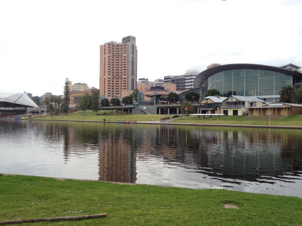 1 hr 15 min – This morning I left the hotel to run as it was still dark. Not knowing which way to go, I figured that the path surrounding the stadium oval I could see from my room was a good place to try for. It was under construction, with an older soccer pitch next door. That was a neat old brick building, ivy-covered outer walls. I would guess that will remain as a practice facility once the stadium is completed. Once I made it over the road-bridge, it was a hard-packed dirt trail along the river. Many curves, roller hills and plenty to see as the sun rose behind me. I was chilled but not for long – I wore a long-sleeve lulu shirt and shorts. The path continued out of the CBD and into more of a suburban area. Buses and light rail trains buzzed under me and over me as I followed the curvy path along the waterfront. I saw a few other runners, I had to remember to run like they drive — stay left! I saw some people riding bikes with backpacks, I surmised they were going to work and changing on site. I saw a small waterfall, and some parts of the run were in tree-lined areas, very lush green tall trees. Birds were all over, even wild cockatoos! I included a few pics taken on my iphone.