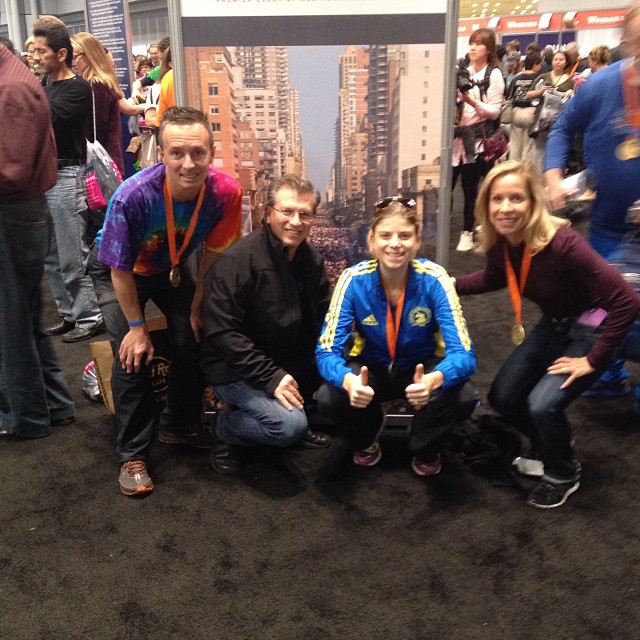 Saturday morning I went to the Hard Rock Cafe for the JDRF breakfast (Sal’s run charity group). l contacted Charlotte about meeting her at the expo, knowing how crowded it was we really weren’t looking forward to all of the people and crowds again, BUT we had forgotten to get the special 2012 marathon medal and wristband they were giving out to folks that were registered for last year. We enjoyed a good breakfast, I oogled over the rock ‘n roll memorabilia as expected, then we took a cab to the expo. It was easy to meet Charlotte, she had already gotten her things but also forgot the 2012 medal. A quick visit, a few vendor booth stops and purchases and we were back out on the streets. Charlotte went to spend the day with her parents and sisters, we dropped our things at my apartment and took a subway down to Battery Park. Our plan was to see the 9/11 Memorial fountains, the Orb in the park and whatever else we wanted. We had good laughs through the day, the people, the trains, the city delivers all of that! After a good look at the fountains and new Freedom Tower, we went back to the Park Central to get sorted for dinner and meet with Francee Jefferson. She had a high school cross country meet Saturday, a late afternoon flight up from Ft Lauderdale and a hurry-up visit to the Expo for packet pickup. She came to our hotel, and we also touched base with Nicole Rattay who was staying at Park Central, too.