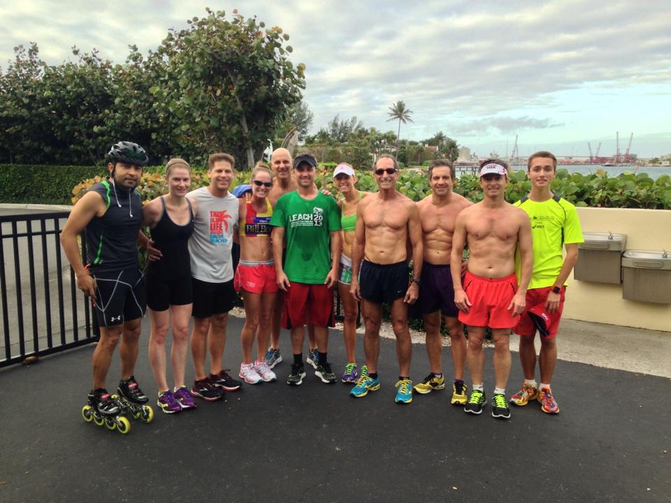 We met Erica, Dave Stone, Kara, Lauren, and a few I didn’t know at the Clematis fountains. A few homeless folks milling around and a security guard watching the sand sculptures was all we saw. We ran across the under construction North Bridge to Palm Beach, where Richard Kaplan and Rick Luise were waiting. We ran north on the Lake Trail, through the well-manicured gardens and backyards of the Palm Beachers lucky enough to live on the water. It was breezy from the north, but we were protected by the homes and large hedges. Two rollerbladers joined us, stayed with us, then left faster than we were going. The morning was sunny and I enjoyed light conversation with John and the others.
