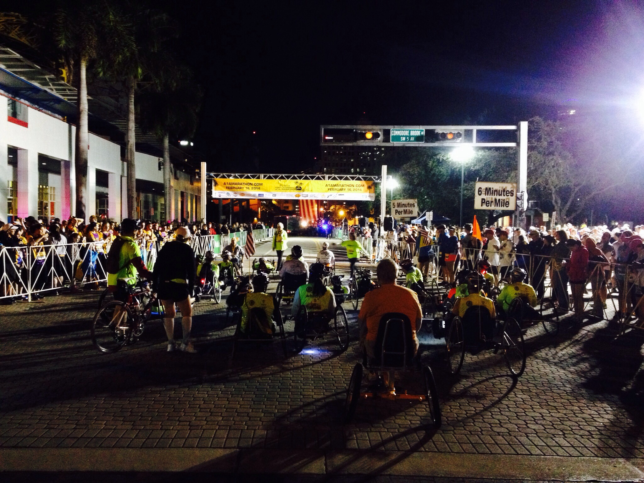 The morning was nice, I met Jeff and Cammie at the finish line area with designs of parking a car at the finish and one at the start. I arrived at the Sheraton Yankee Clipper about 5am, too early for someone to be manning the parking structure. I parked in the valet lot next to the garage. I called Jeff and Cammie letting them know it was a bit fouled up traffic wise. They had already found themselves caught at the 5am raising of the 17th St Causeway drawbridge – ugh!