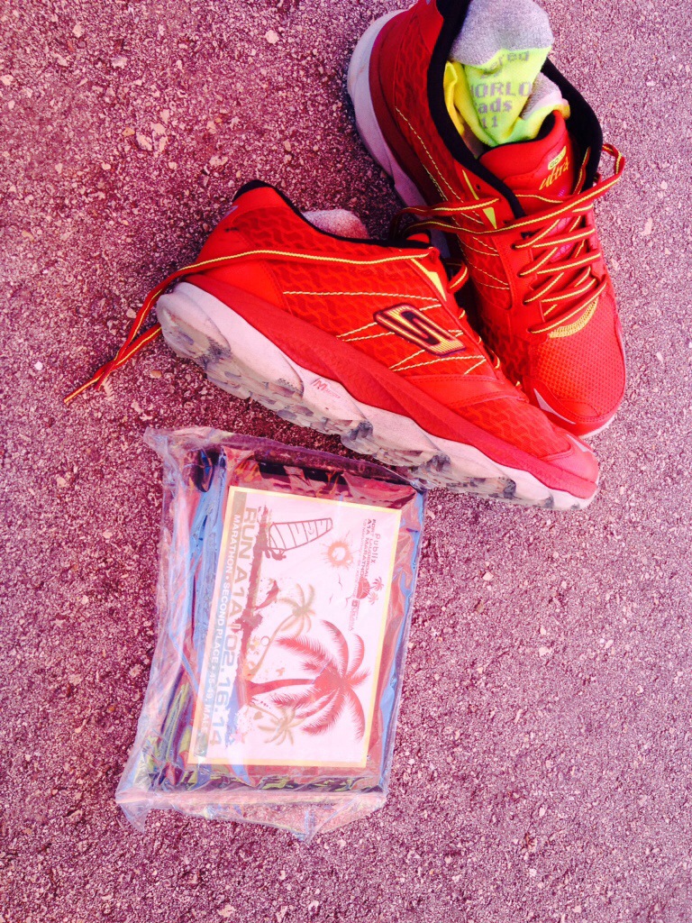 I won a 2nd place age group prize. I wasn’t close to the first place winner, who finished in 3:00 even. It’s my last race in Florida in the category, so I felt good performing well. Next up – Boston! I wore new Skechers Ultra shoes, their second marathon in three weeks. They felt good, no leg impact issues during the race. I laced them up properly so they felt good even after the run. They aren’t as light as the Go Run I had used, but the cushioning is very well done!