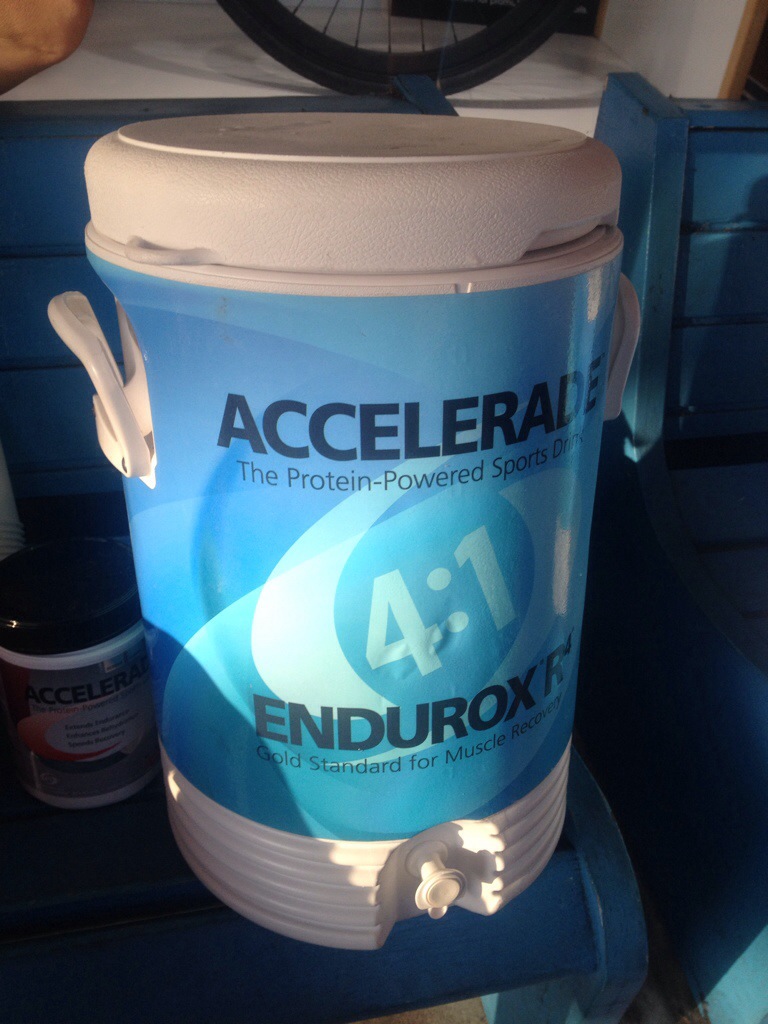 After finishing, Erica likes to cool down jog to the bridge, so her and I with Mike R. did that. John was done when I got back – we taste-tested some of Aldo’s Endurox new flavors, banana and strawberry. I’ll vote with my parched throat – the straberry flavor is a keeper.