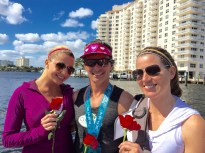 Regina, Helen and April were nearby as I drank water and absorb the day. I saw Jean-Louis, he said he didn’t run fast today, only a 3:08. What I didn’t know was, he had moved up an age group. I finished 1st for 50-54 males and in tune with Erica, Ryan and Eric, all whom also won their AG titles. It was a great showing today for the Colavita Team! I stayed around for beer, pics with friends and the belated awards ceremony. Some kooky yoga pics with Cami happened on the wall of Ft Lauderdale beach, my legs regretted doing that!