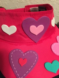 Valentine’s Visor I wore a pink visor and some adhesive hearts from Michael’s craft store – that was easy to create. Welcome in the Valentine’s Day garb…