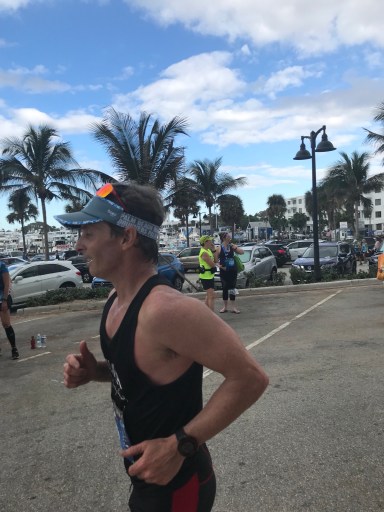 The last bit had me see Walter and Teresa, Janet, Tom and their kids, Ricky Montez and the Boca Tri group, Maureen, and Helen. I was not really capable of running an 8 minute pace into the finish chute, my lower legs were cramping and “percolating” with each step forward.