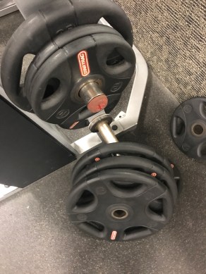 After the track, I drove home and stopped at LA Fitness to complete a “5 x 5 Stronglifts” app session. There’s no one at the gym at this time, I fit my weightlifting in between those that come early before work and those that arrive for 9 am personal training things.