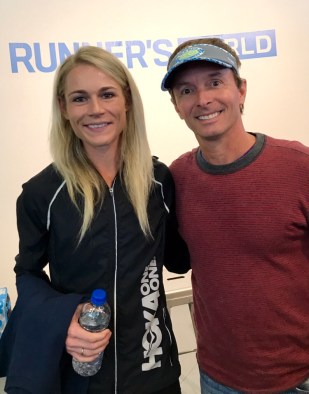 Next, we went to the expo – crowded and almost as if it were in a basement at the Seaport location. We saw vendors, met some friends, waited through the end of Amby Burfoot and Bobbi Gibbs’ talk to say hi to Anne Wessling. She tipped us off that Jordan Hasay would not be doing her scheduled talk. There was another opportunity to see her at the Sword booth. I didn’t want to wait for that – it was on a skinny aisle and it would be chaotic.