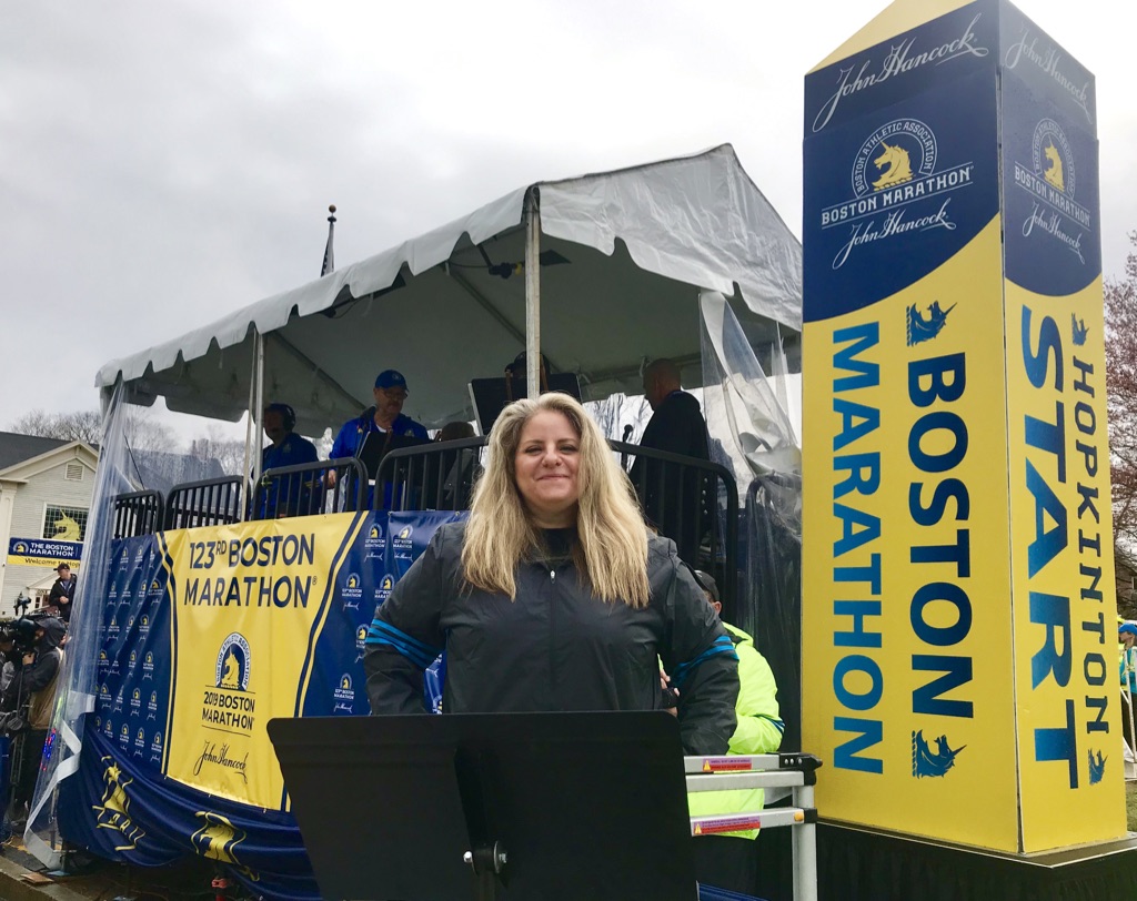 Once the details were sorted, Trooper Dan and Julie performed America the Beautiful and The Star Spangled Banner. It was memorable to watch, and to think that for the first time in 123 years of this race, they now had sign interpretations and Julie was the reason why!