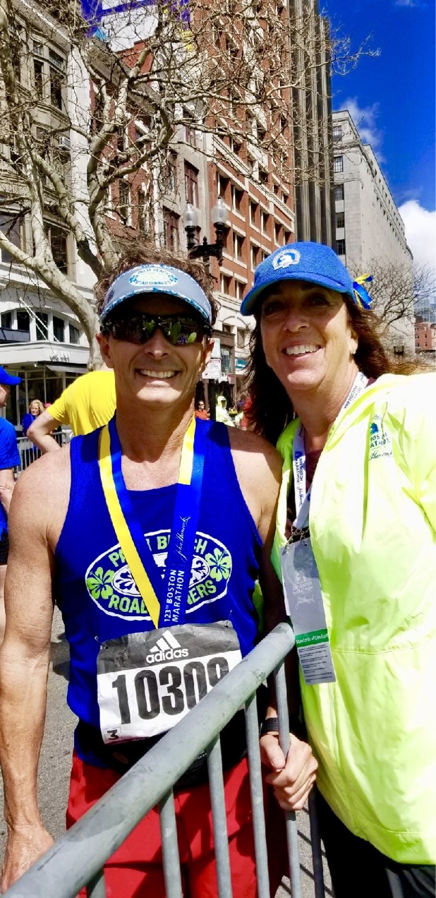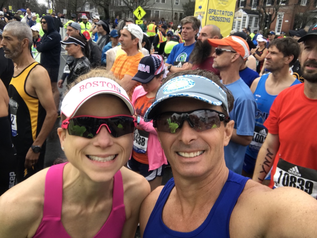 We watched all of the elite waves start their race from a great viewing spot. I think the only person with better sight of the action was Dave McGillivray! Seeing the fastest ladies and men runners right before their big event was motivating for me. They had trained for months to make this day possible. They all had goals and high podium finishes in their plans. So much of what would determine their actual result would take place in their heads along the journey of 26+ miles.