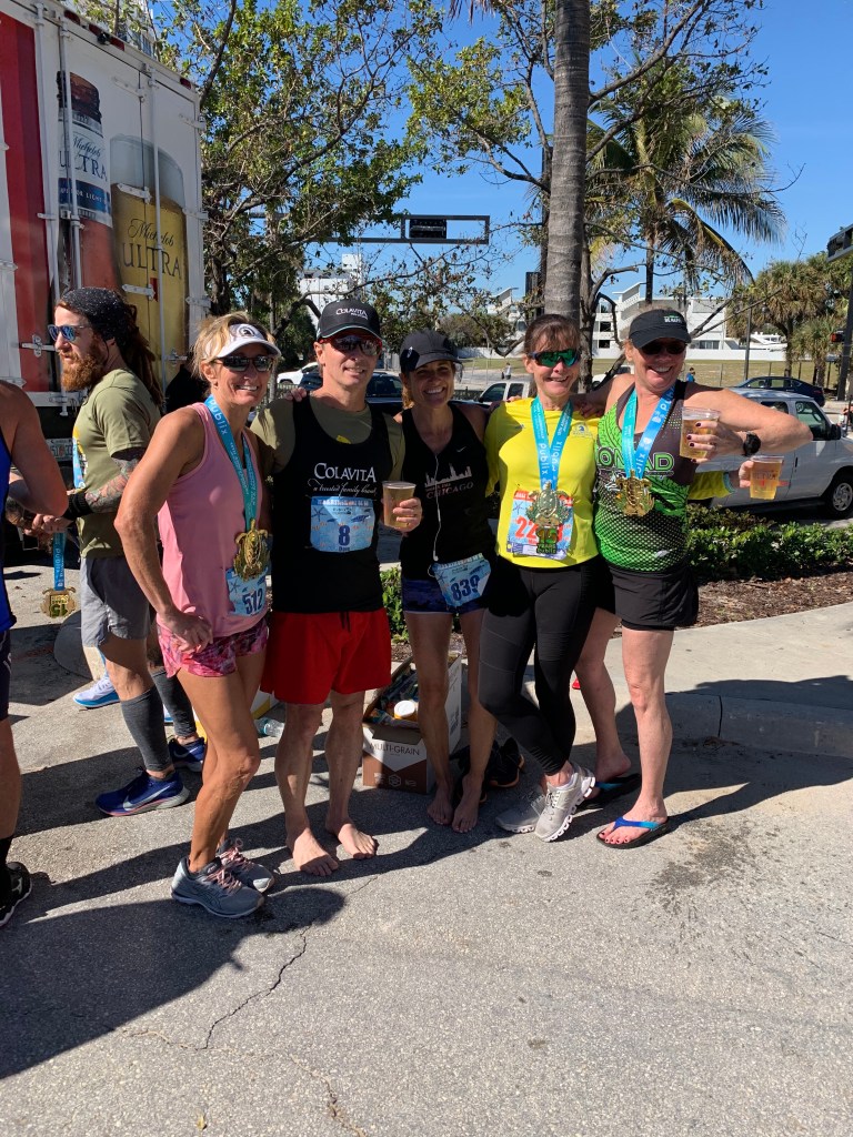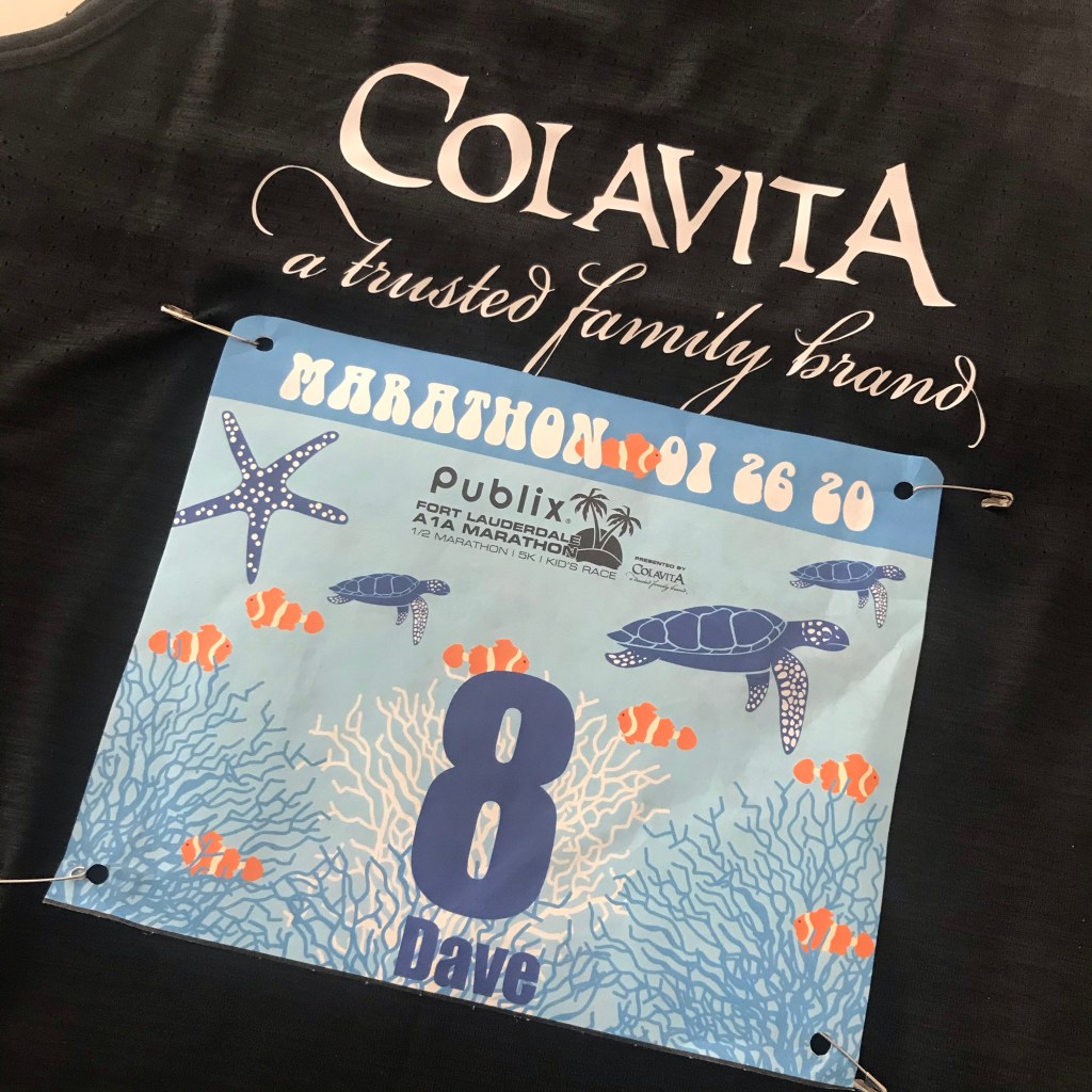 This was the 15th running of this event, and it proved to have the best weather conditions of any previous year. The A1A race weekend was 3 weeks early, the result of swapping dates with the Miami Marathon due to the Super Bowl being in town. I was a member of the Colavita Team again, they are the Presenting Sponsor. This amounts to a great dinner on Friday night at Luigi de Roma in Deerfield Beach, a nice lululemon singlet, and fun people to share the experience with. This year, Kaitlyn Kelly was added to the team, she ran the half marathon. The dinner was good and it was nice to connect with everyone both Friday and Sunday morning.