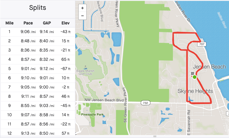 The final SOS 16 mile run of this training was done in the Skyline neighborhood of Jensen Beach. This is where we wrapped up last season’s successful Boston Marathon training. The route is a 4 mile loop with approximately 150 ft of hills rolling up and down each lap. We do 4 laps.