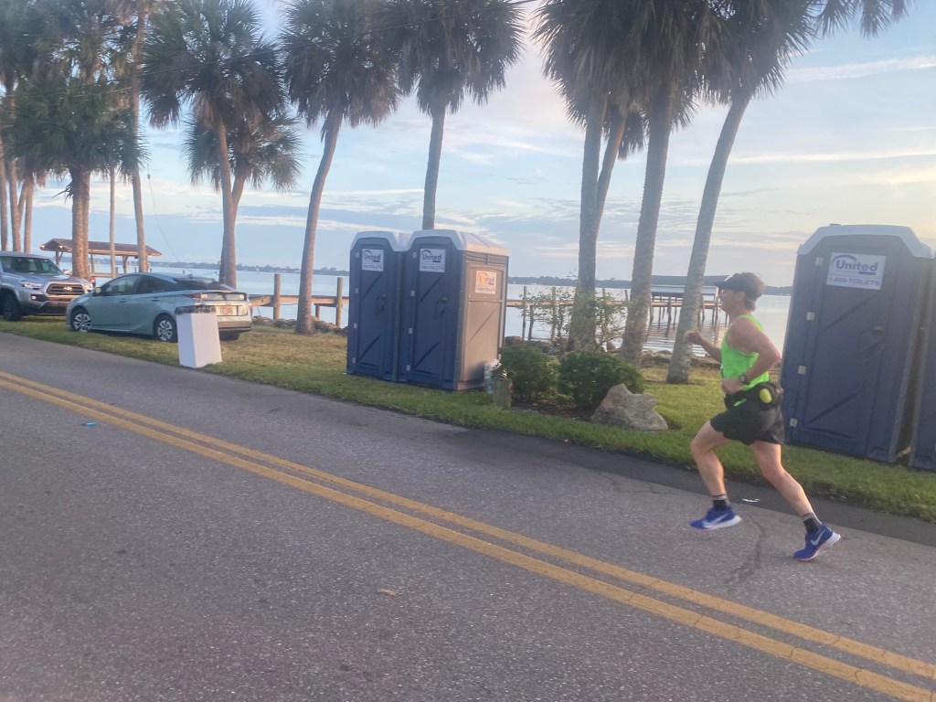 Running on this course was very familiar to me. I have done the pace team leader duties and I knew the route was very favorable. You run to a turnaround point on River Road, then return. Easy! It’s a narrow road with great scenery to the east. The Indian River views are prominent and a reason that many people return to this event year after year. I started in the dark, running past Kaitlyn and Fiona who began their first mile very quickly. As I passed them I reminded each girl that they were going too fast… not a problem, they made the adjustment and slowed up.