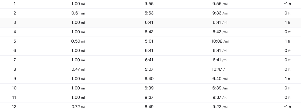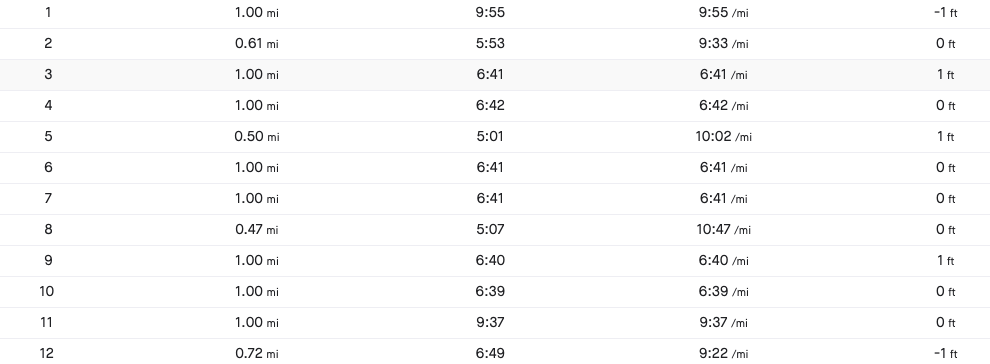 I was happy with this result because I didn’t have any puckering from the parts of my body I thought might act up. And, even in the humid conditions I was able to do well, not relying on the “adjusted paces” that are recommended for humid and hot conditions. I do not have many weekly miles on my legs, so I’ll see how that weighs in as I climb the ladder of distance and intensity on the schedule.