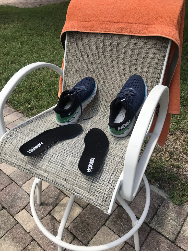 I don’t know how or why this summer became the time to be so “glistening” wet on every run, but it is my reality. I have new shoes, Hoka Clifton 7 which I like and know perform well for me. It’s not their fault. On most runs over 7 miles I get a squish and slosh definitely on my left foot, and most of the same on my right side.