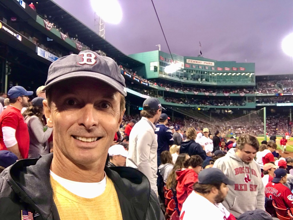 Sunday afternoon had me move my things to Pete & Sandra’s hotel, the Hyatt Regency in Cambridge. I used the T line rail when I could to stay off my feet, plus I did a daily rental of the citywide Blue Bikes for a day. That helped me zip around without putting so many miles on my feet. Jen went to the airport to get Kaitlyn to her early flight home, then we met at the Boston Red Sox game. It was the first home game of the playoffs, which made for an exciting atmosphere and a long game to watch. We left after 7 1/2 innings since we had the race in the morning. The game went on for 13+ innings!