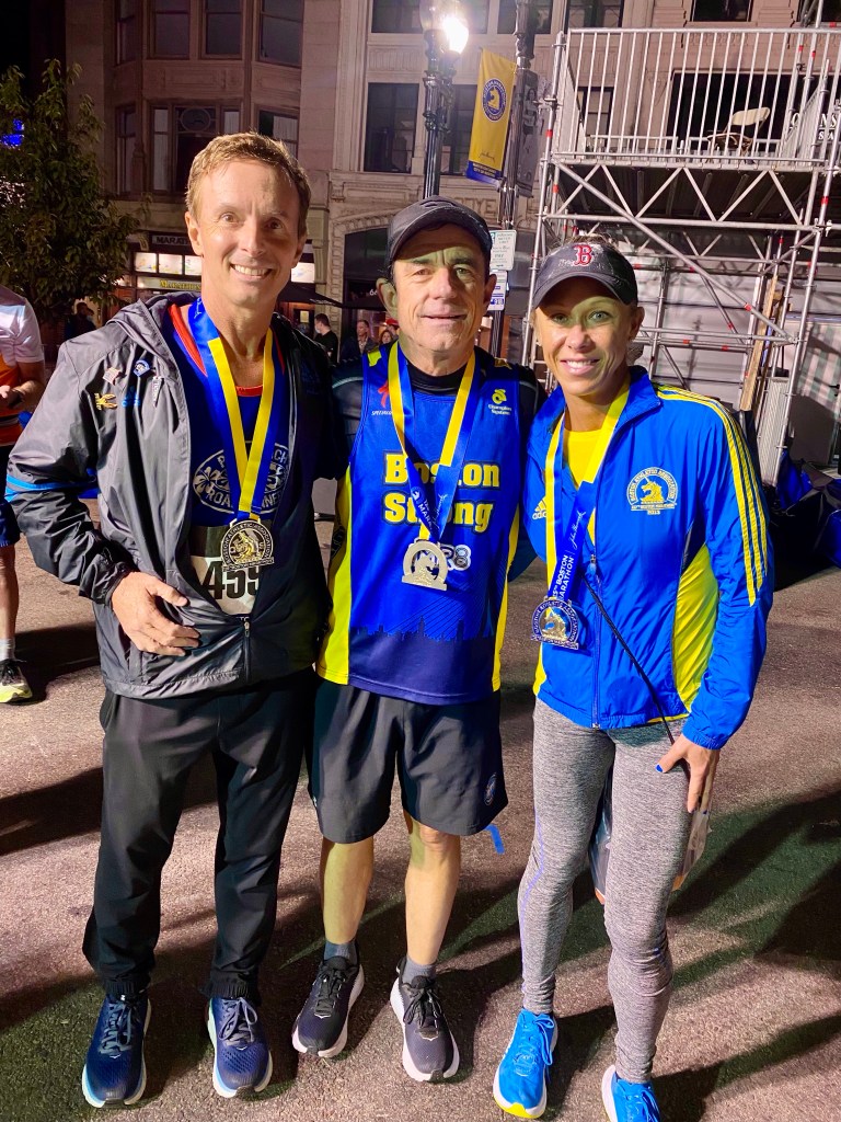 Saturday I did a short run with Kim on the Charles River – the weather was cooler than home but I felt the heavy & humid air. With a small expo to browse, we went into town and saw the finish line area, Marathon Sports, back to Tracksmith and another look at the expo. Kim’s family was arriving in the afternoon, so we did things runners would appreciate until then. Once she went back to meet them at their hotel, I met Sandra and Pete, had a dinner, and returned to the Embassy Suites.