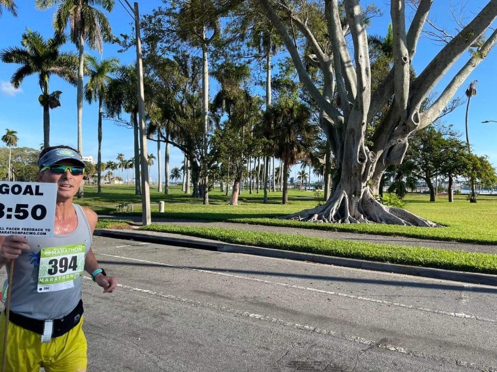 Prior to the race, I was involved with the WPBF live broadcast. I was interviewed by two of the morning sports news guys, Yianni and Shayne. They asked a few questions about the race, about the role of a pace team leader, and about larger marathons like Boston and New York