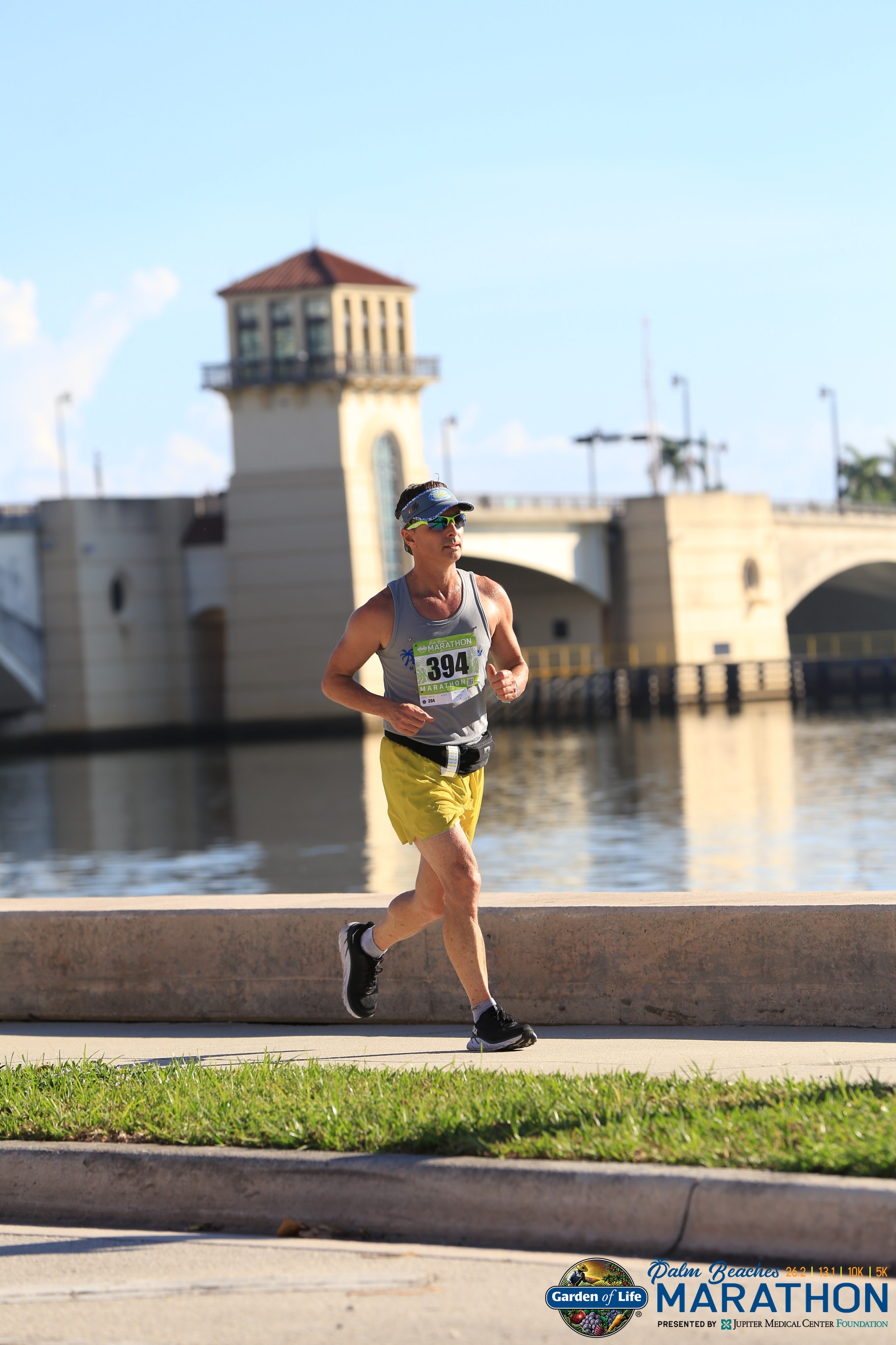 Once I was on Flagler Drive approaching Mile 19, I had been doing well on pace time. I was to the second accurate as I passed the 19th mile marker sign. And in the next 5 minutes, my energy fell off. I saw my pace dwindle to 9:00 per mile, then 9:10. At first I thought I was in a bad area for the Garmin. It did feel more labored to run at the 8:45 pace, but I wasn’t worried. In the next 1/2 mile, that would change.