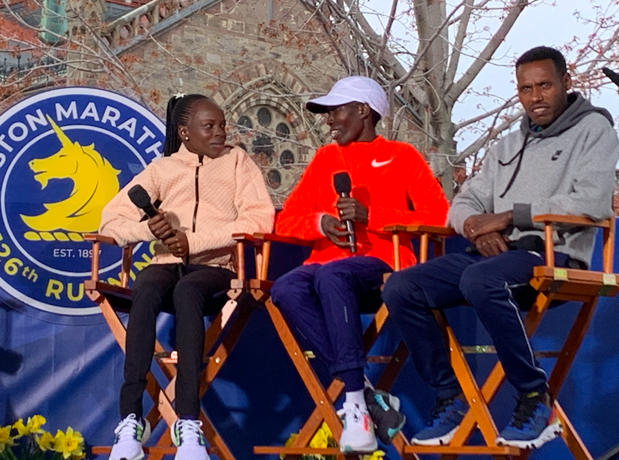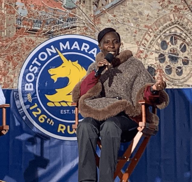 Immediately after that we went to Fan Fest, a BAA organized area near the marathon finish line that featured live music and runner specific seminars. The panel I most wanted to see was at 10 am, the International Pro group. Featuring Edna Kiplagat, Lelisa Desisa and Peres Jepchirchir, it was a very nicely moderated discussion with these terrific athletes. Before this main group came on stage, the emcee brought Catherine Ndereba up to interview her and ask questions. Her 4 Boston victories and many other accomplishments are what many would call “unbelievable.”
