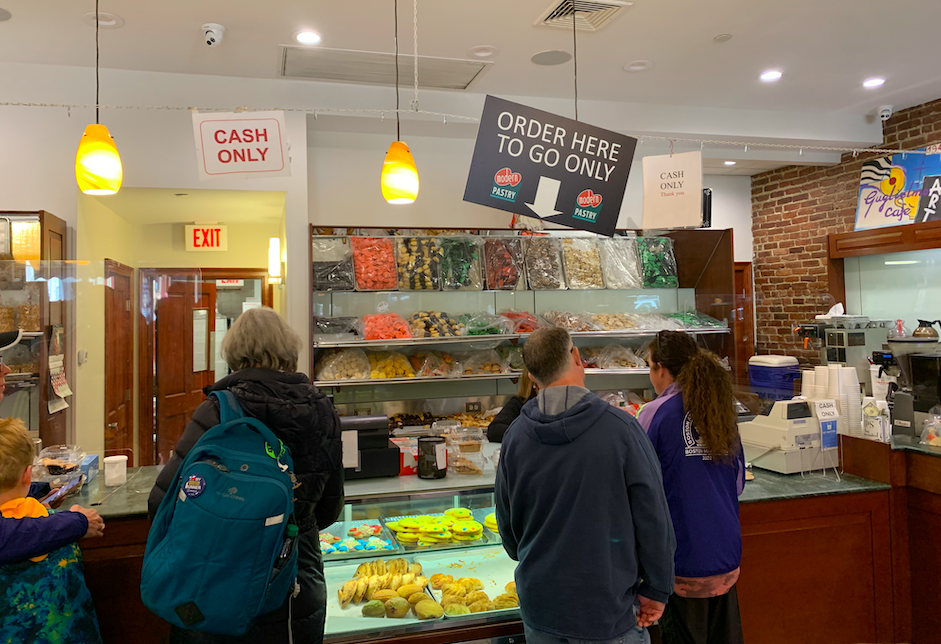 On Tuesday morning, it was time to pack and get my bags out of the room. Maureen, Kim and I went to the Tracksmith store to get our posters stamped. After that, we slow walked Newbury Street and Boylston Street, stopping and looking at whatever we wanted. Our plan was to visit the North End, eat Regina’s Pizza, pastries and cannolis, and dabble in the touristy things in Quincy Market and Faneuil Hall. We met Pete, Sandra, Jackie and Mike for that. Some of them had an earlier flight, already declared as “delayed.” My flight was at 7:40 pm, there were no delays and an easy way back home.