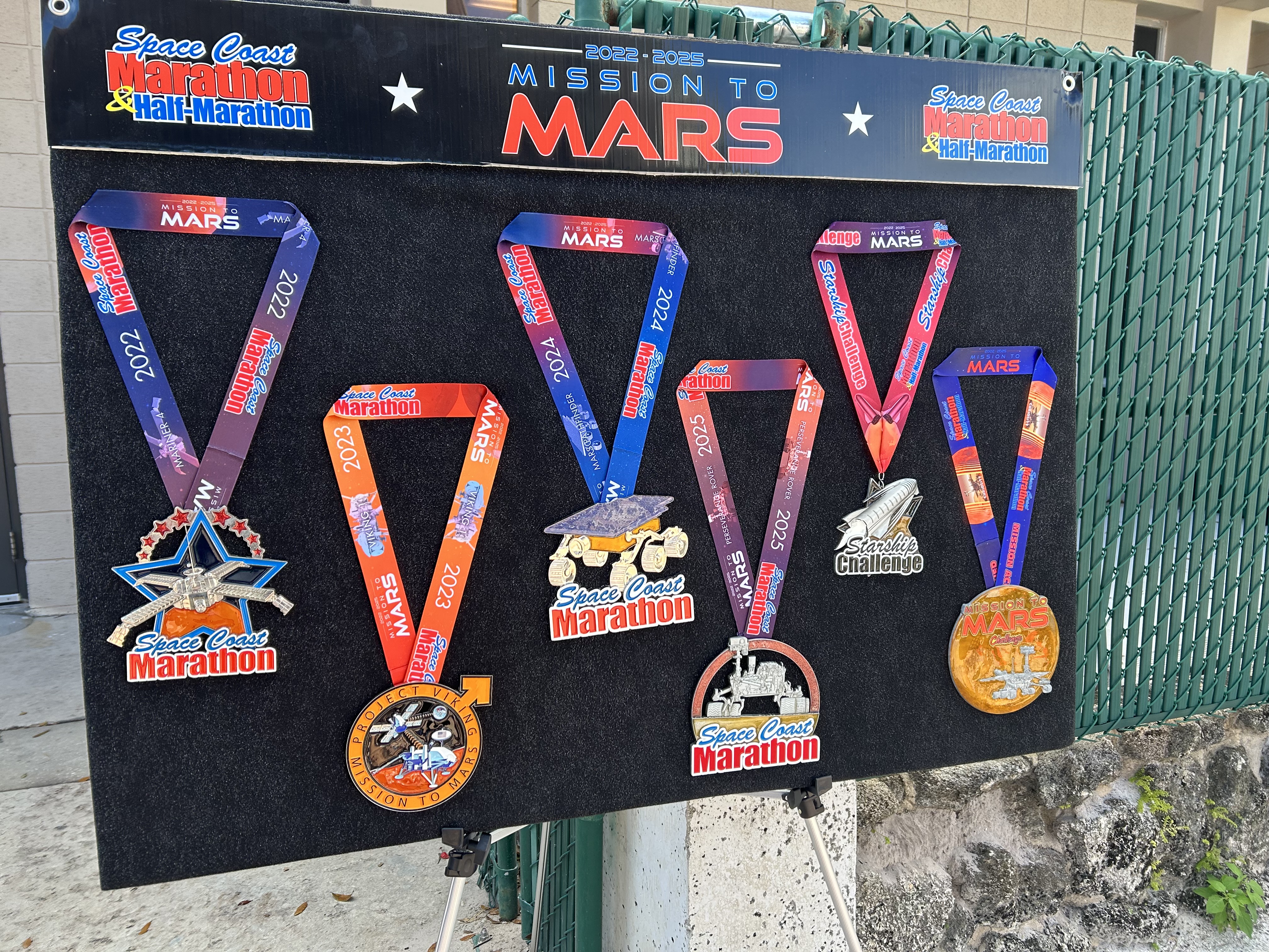 The medals and race swag are always super from this event. I stayed awhile at the finish line area to hand over the pacer signs and wait for friends. The towels and after party are great – I recommend this event to all our local runners. It’s close with only a 2 hour drive. The food options and things to do around Cocoa Village are great. This is a great event and we are fortunate to have it conveniently nearby.