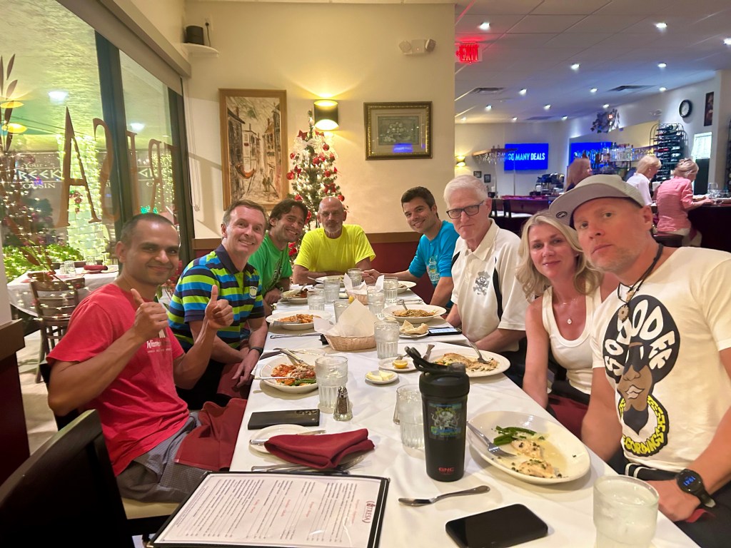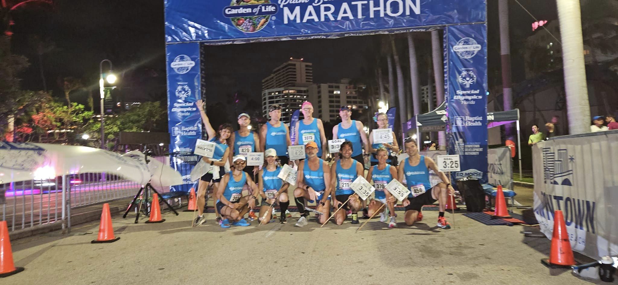 My steadies – Valentina, Chad, Alan and Karine rolled with me on a repeat of what we ran two hours ago. Now the sun is up, heat is on and wind is significantly stronger. We wound up Flagler Drive and through the Old Northwood neighborhood on pace, with me providing constant reminders to drink, eat your fuel and pour a small cup of water on your head if that feels good. I do much less talking, I’m working too. I track my heart rate, it’s been good so far. I saw a few odd spikes in this metric, but it snapped back to high 140s low 150s after a few minutes. For a 9 minute pace I should be in control. I ate salt pills but not enough of them like I was racing. I had 3 Maurten gels, which was ok. I didn’t feel low on energy.