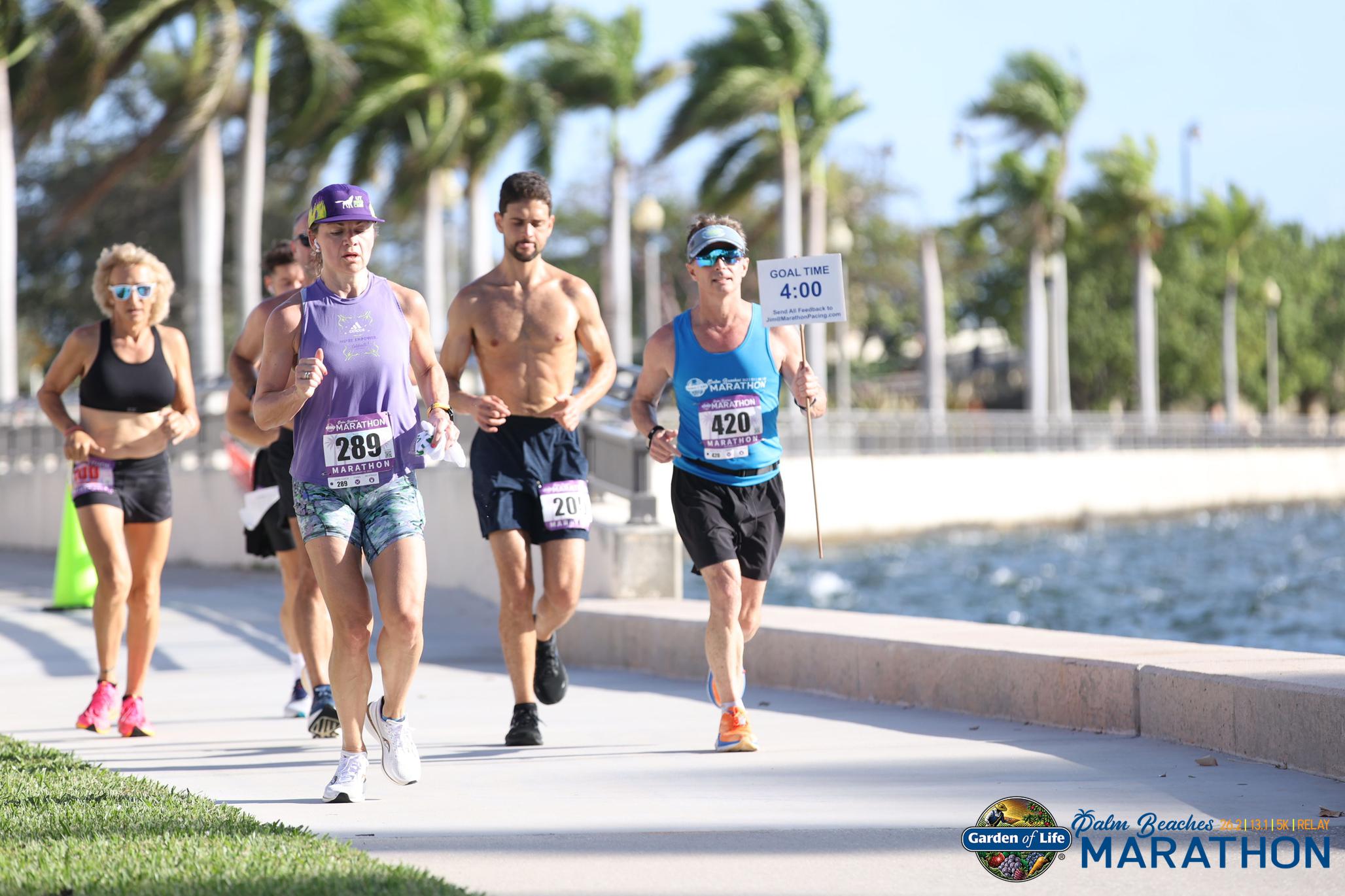 This year we knew ahead of time – despite the cooler weather in the days leading up to the Sunday morning race, that we’d be having a warm day. Temps were set to be in the mid 70s for the 6 am start and rise to 82 degrees by the time my four hour pace group would be finishing. Nothing too surprising for the Palm Beaches Marathon, it has a history of late summer temps. This was the race’s 20th year and 18th running.