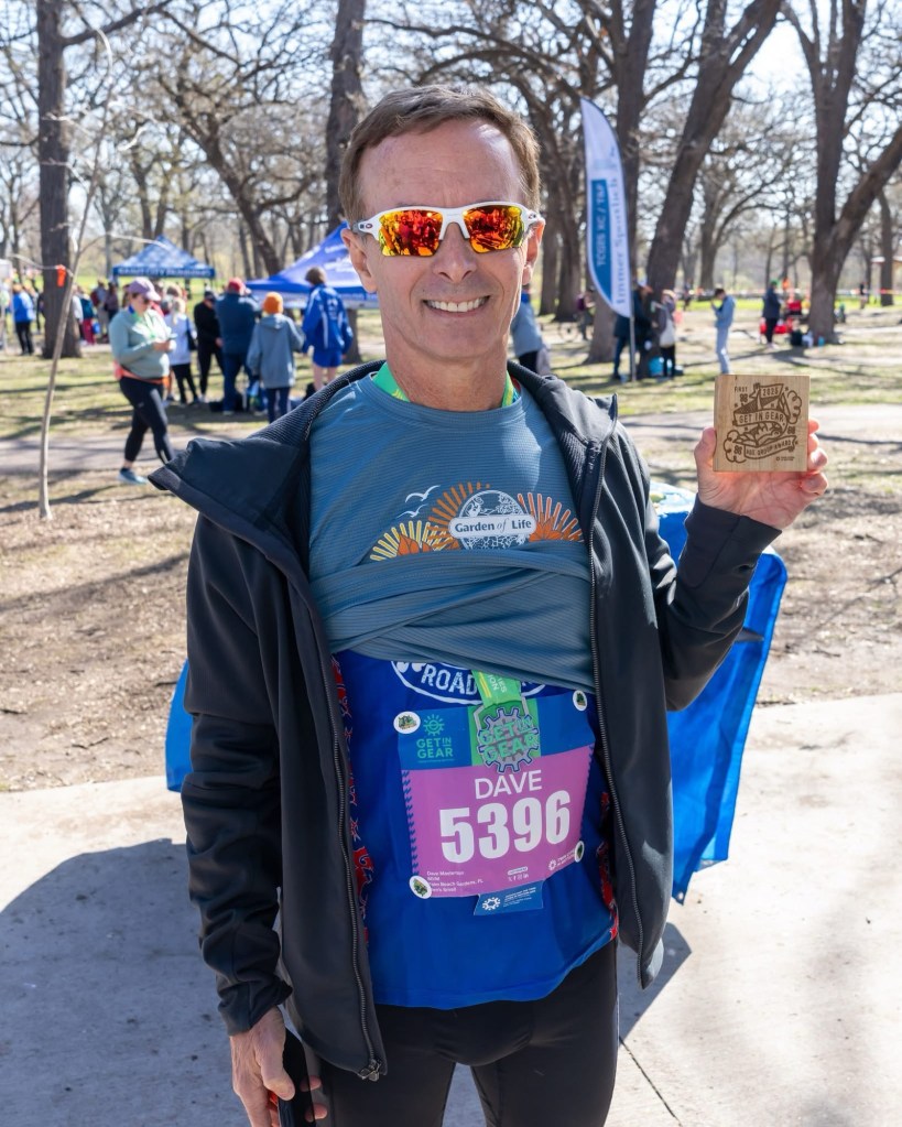 Now I had less people ahead of me. One tall guy passed me and then continued ahead. I kept watching a girl ahead dressed in a very bright neon yellow top with a similar colored ribbon woven into each of her pigtails. I was slowly gaining ground on her, but not with a specific purpose. I hit the second mile and my watch read 6:17, now I was surprised to see I was already slowing in the second mile. My limited 5k history is to run a great first mile on or ahead of pace, do an “ok” second mile then I would fade after the 2.5 mile point and then I’d slow for the finishing 3/4 of a mile. For this race, there wasn’t a breeze, I heard some cheers from the runners coming at me heading towards their turnaround, so there were no excuses. I was breathing hard but not “crisis” mode yet. I continued running as straight of a line as I could, seeing different landmarks I noticed on the warmup run. “There’s the overpass, here are the houses I passed.” Then just one cross street manned by police and it was up a small rise to the 3rd mile sign. I came in with a 6:12 for that mile. I saw I was now almost next to the brightly dressed girl, who according to the runners cheering on the other side, was second female in the race. I decided to open up with whatever breath I had left to pass her. I may have to chew on my tongue I remember thinking, but once I pass her – it will probably incite her to chase and try to get me before the finish. I have to press hard. I ran the final piece of it and finished in 19:29.