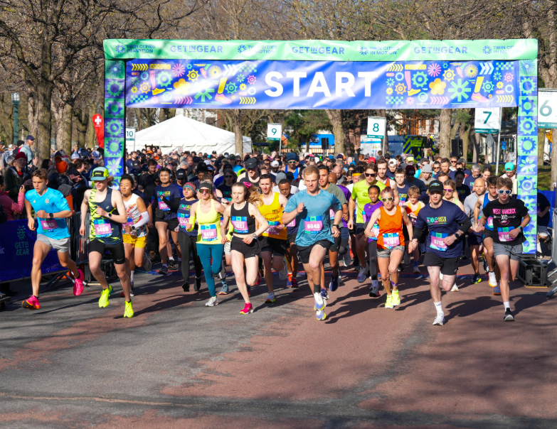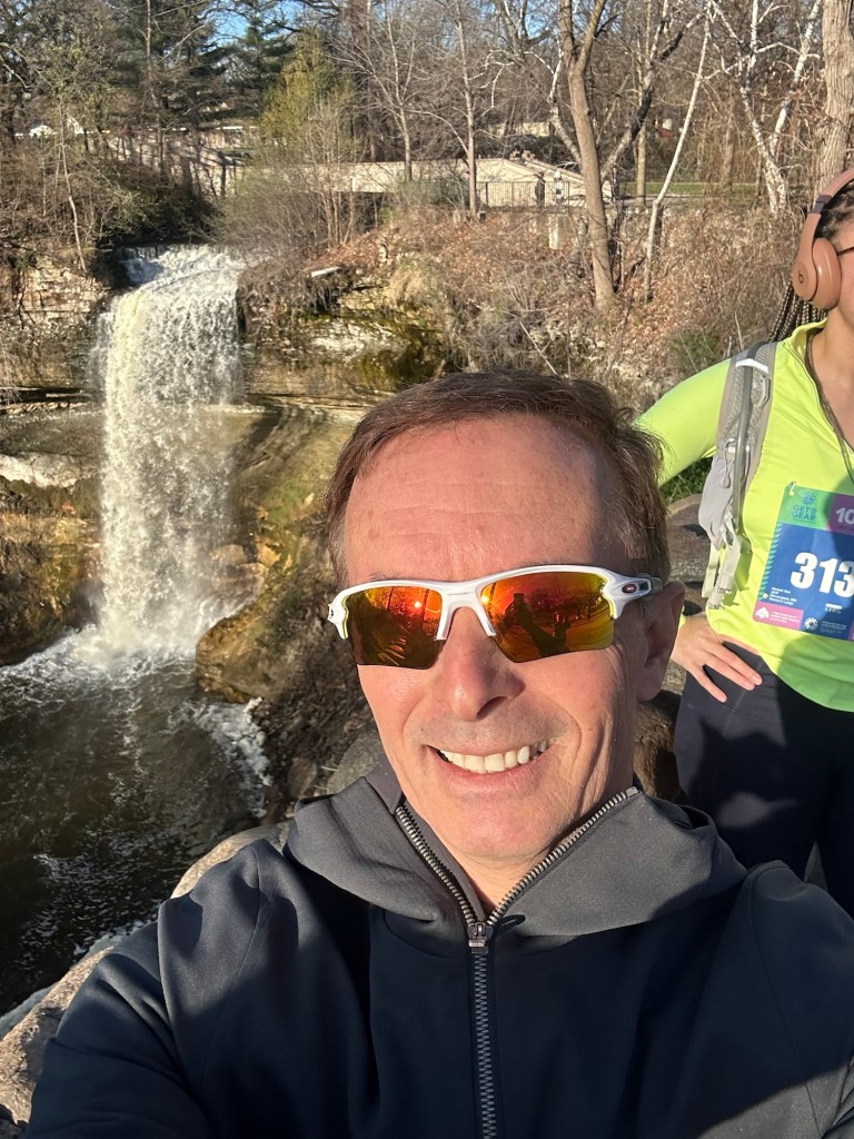 Minnehaha Falls Park was the race site. The Get in Gear event is considered a Rite of Spring for the Minnesota area families and the local running community. Anne Carroll said this was her first 10k in the late 1980s, Christina Rooney said she had not only participated in this race but went to college near the park. The park had a nice view of Minnehaha Falls, a waterway that fed into the Mississippi River. The river was along the east side of the 5k course. It was visible if you wanted to see it, but I didn’t catch many views of it in the race.