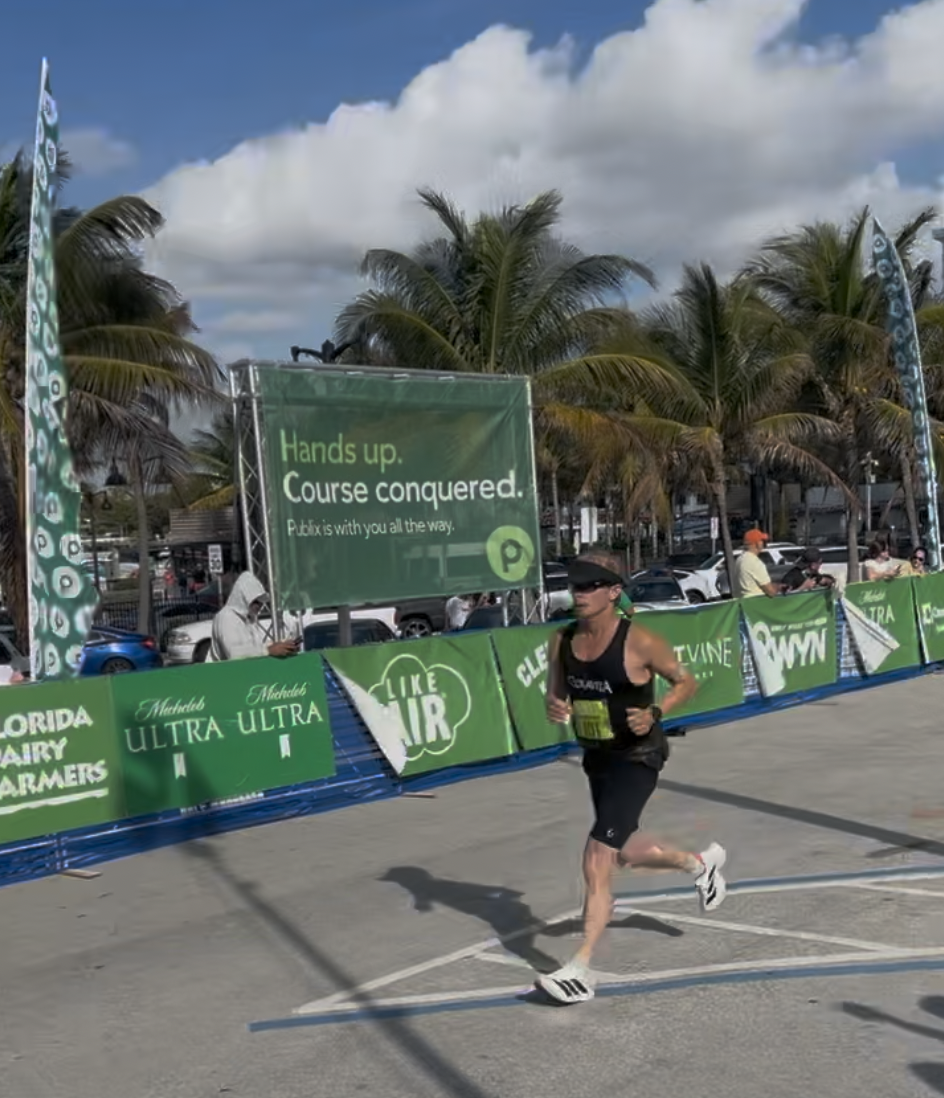 The race start went well, I was at Mile 1 in 7:53. I fugured I’d stay around 8 minute pace until exposed to the head wind on the way back for Lap #1. The course ran straight down Las Olas Blvd, crosses over the intercoastal, then it makes a right turn onto A1A. this little switchback section allows you to see friends and folks that you know before North on A1A.